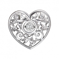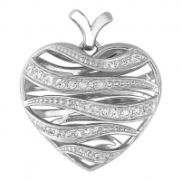 Серебряный кулон Сердце с голубками и танцующим фианитом